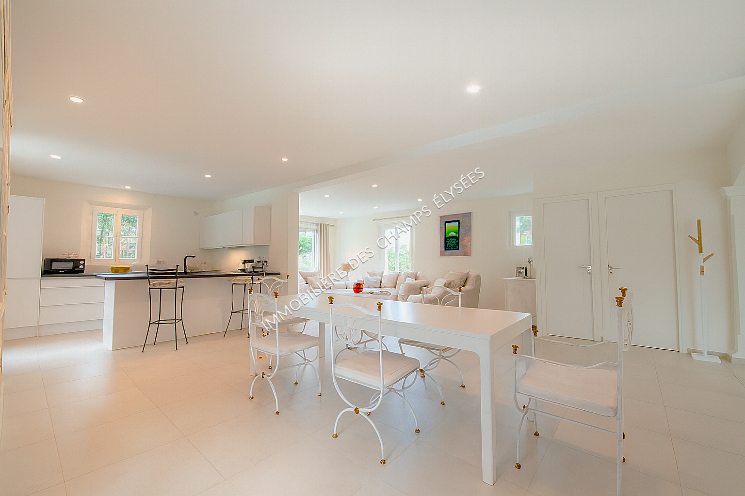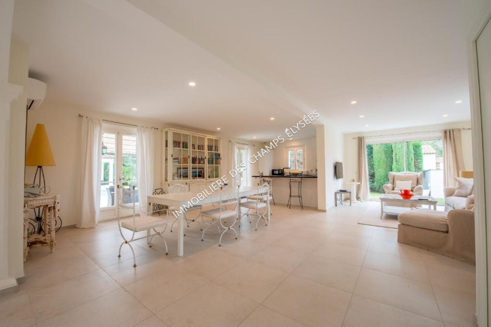 La villa comprend 4 belles chambres complètes, dont une suite parentale à l’étage avec dressing. Les espaces de vie, composés d’un vaste séjour, d’une salle à manger et d’une cuisine ouverte entièrement équipée, totalisent près de 80 m² et bénéficient d’une belle luminosité.